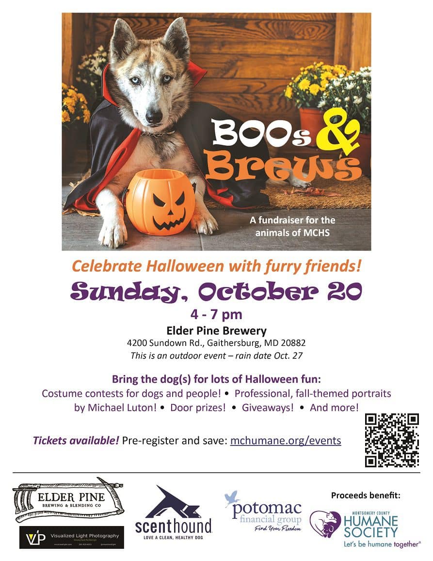 Bring the dog(s) for costume contests, a fall-themed photo booth, door prizes and lots of other fun. Outdoor event- Raindate is October 27th. To register, visit https://www.mchumane.org/events/boos-and-brews
