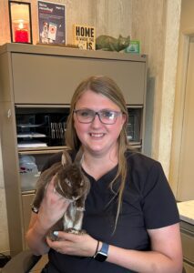 “The staff here is absolutely phenomenal. As someone who moved to the area and wanted the best level of care for my fur babies, this was the place. My aunt recommended me to go there, as she has gone there for years, for her cats and dogs. Within one phone call I was pleasantly greeted and assisted with setting up my cat’s annual appointment. I thought it would be over a month until I could get my cat in, as that’s how it usually was at our last vet unless it was an emergency/problem visit. However, the receptionist informed me that they had openings within the next two weeks. I was dreading having to call and play phone tag between my old vet and the new one for file transfer etc. But the receptionist just asked for the information from the old vet and got all the files transferred for me. The staff is amazing!!! They are very friendly, compassionate, diligent workers who have the best level of care and knowledge. You can tell that they care about the animals wholeheartedly and they listen openly to the owners’ concerns. They don’t talk down to you; they educate you and help you find solutions. They keep an open line of communication and are so reliable. They make you and your animal feel seen and heard. Their prices are incredibly reasonable, and they are exceptionally helpful. They keep my mind at ease. Everyone here is exceptional and I highly recommend them to anyone in need of a new vet. They always follow through on their actions. I would not hesitate to reach out. Whether it’s file transfer, emailing receipts, medication refill, or getting your rabies records. Heck, they even sent a card to the cat and I that said, ‘thank you for coming in and that we look forward to working with you.’ I know that’s a small measure, but it goes a long way in showing how thorough they are and how much they care.” [Jess Golliday, Google Reviews]
